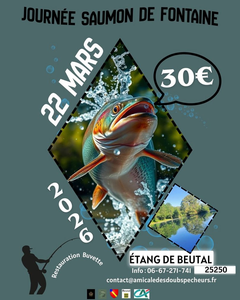 L’association ADDP (Amicale Des Doubs Pêcheurs) organise une journée Saumon de fontaine dimanche 22 mars 2026 à l’étang de Beutal.
