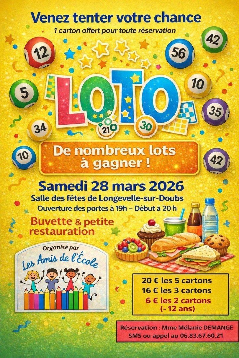 Lâassociation Les Amis de lâĂcole organise son loto le samedi 28 mars 2026 đ±.