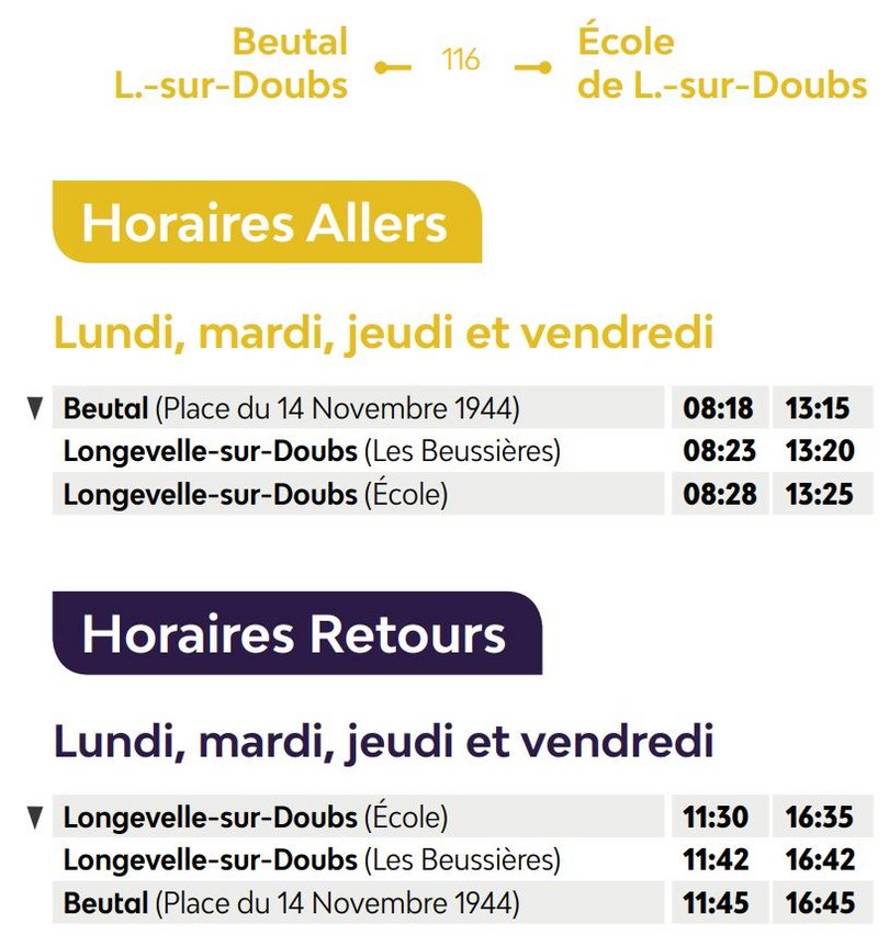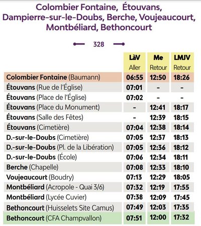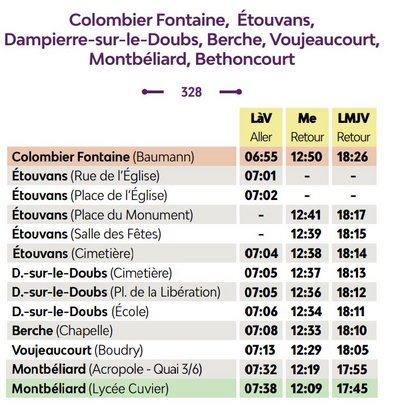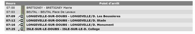 Pour le collège de l'Isle sur le Doubs, il y a 3 arrêts de bus (Les Beussières, Stade et Monument).